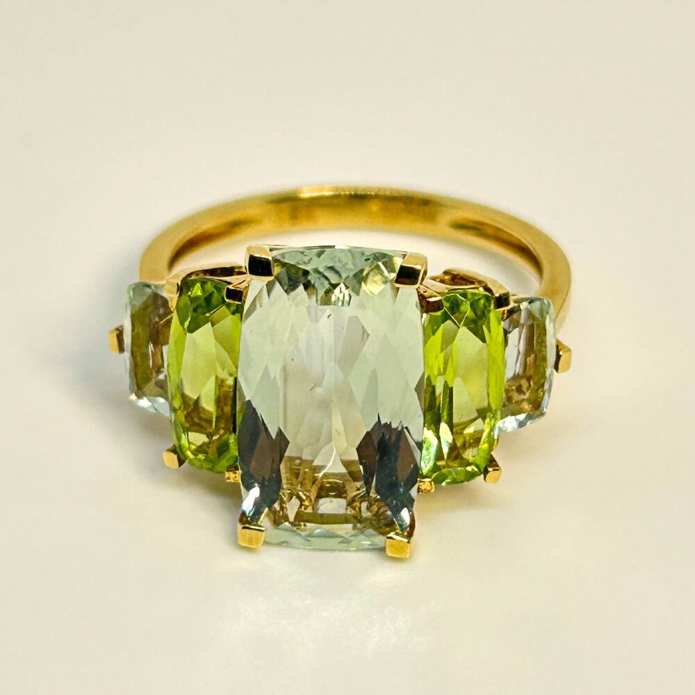 K18/クオーツ4.8ct/ペリドット2ct/リング